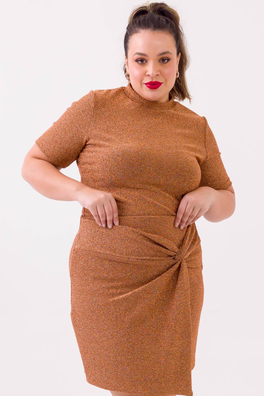 Tecido: Malha dublada com textura de crepe, proporcionando um toque macio e suave. O tecido é levemente encorpado, com brilho cobre dourado e muita elasticidade, garantindo conforto e liberdade de movimento. Perfeita para o uso diário, esta blusa oferece conforto sem comprometer o estilo. Ideal para diversas ocasiões, basta adicionar acessórios para transformar seu look facilmente.