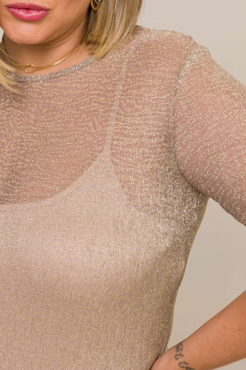 A Blusa Lia é a escolha perfeita para quem busca uma peça delicada, sofisticada e ao mesmo tempo, versátil. Com um brilho sutil em tom dourado rosê, esta blusa captura a luz de maneira suave, criando um efeito elegante e discreto. Ainda perfeita para sobreposições, combinando facilmente com um tomara que caia, colete, blazer, e muito mais.