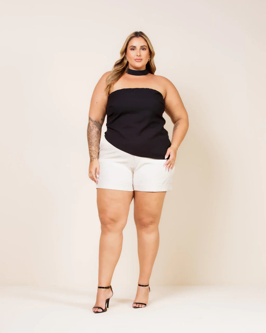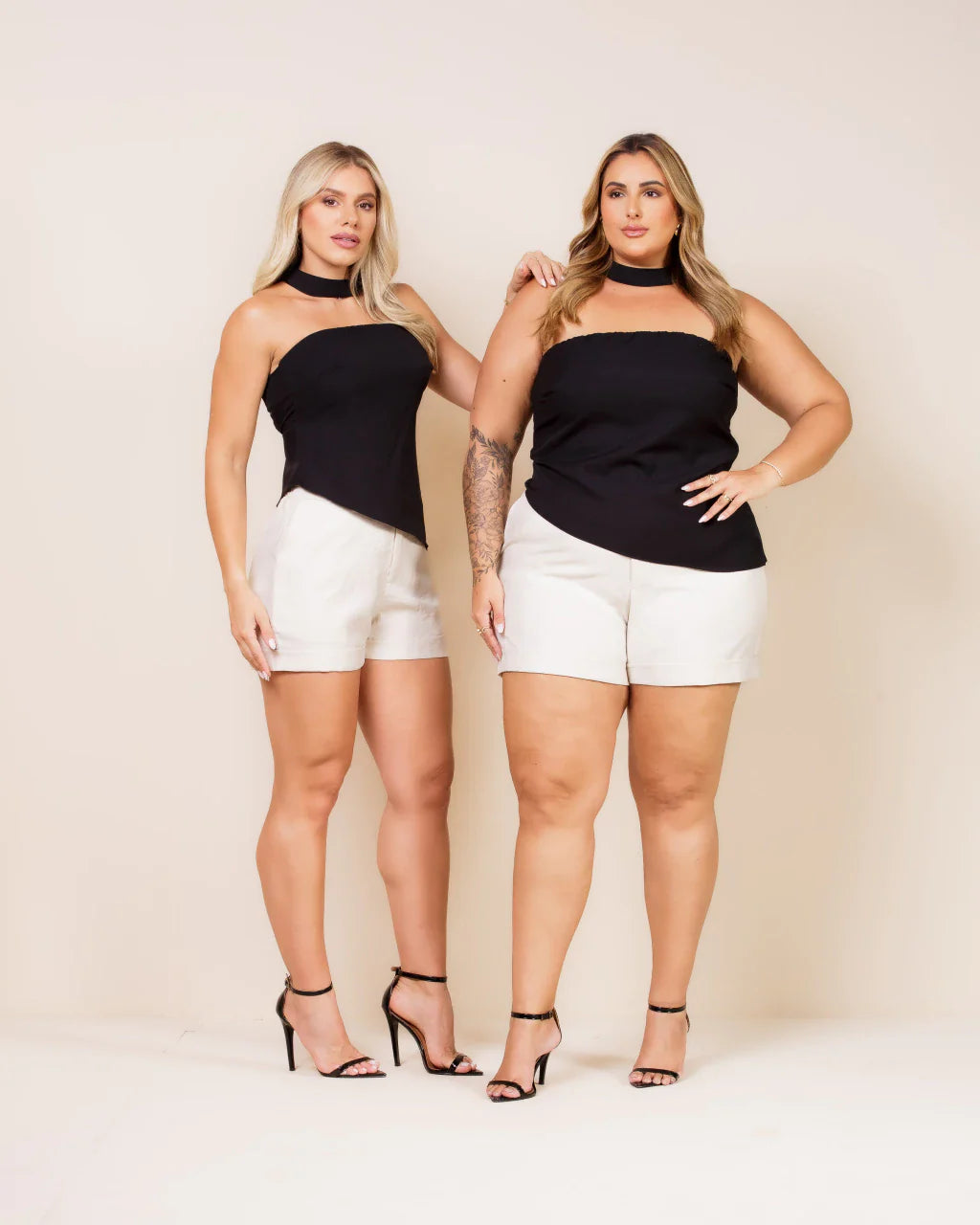 O design assimétrico sem alças valoriza a silhueta e proporciona um visual elegante, ideal para diversas ocasiões, desde um jantar especial até eventos mais formais. Combine com saias lápis, calças de alfaiataria ou acessórios delicados para um look completo e sofisticado.