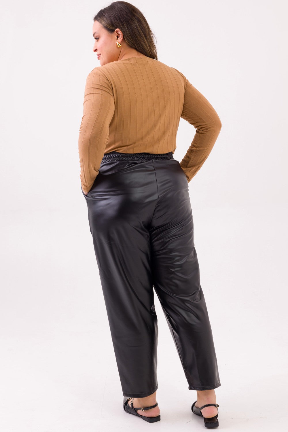 Seu tecido de viscose e elastano oferece uma sensação suave e flexível com bastante elasticidade, enquanto o canelado largo adiciona uma dose extra de sofisticação.