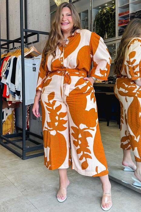 Conjunto Plus Size Calça Camisa Tricot. Prepare-se para arrasar com nosso deslumbrante conjunto! Confeccionado com o luxuoso viscolinho de alta qualidade, este conjunto é um verdadeiro exemplo de estilo e conforto. A camisa, com um charmoso comprimento cropped, apresenta uma modelagem soltinha que abraça suas curvas com delicadeza. As mangas curtas e a gola colarinho adicionam um toque clássico e elegante, enquanto o abotoamento frontal e os bolsos falsos trazem um toque de sofisticação e praticidade. Os detalhes de tricot delicadamente posicionados acima do busto e nas mangas elevam o visual, proporcionando um acabamento refinado e moderno. A calça, com sua modelagem reta e cintura alta, é o complemento perfeito para este conjunto deslumbrante. Forrada para garantir o máximo de conforto, apresenta um fechamento frontal por botão e zíper, além de cós com passantes aplicados para um ajuste perfeito. Os recortes frontais estratégicos adicionam um toque de charme e estilo, destacando sua silhueta de forma elegante e sofisticada. Seja para uma ocasião especial ou para um dia casual, este conjunto é a escolha ideal para mulheres que buscam estilo e conforto sem abrir mão da sofisticação. Garanta já o seu e sinta-se confiante e deslumbrante em qualquer momento!