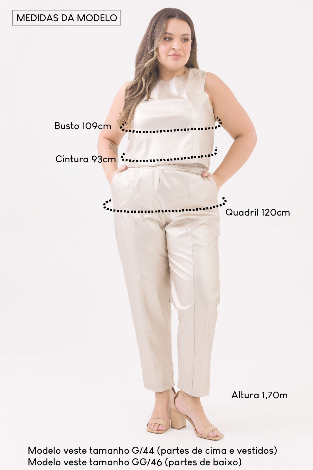 Comprimento total do vestido ref. 26624PS (medindo do ombro até final da barra): GG 100cm | EG 101cm | EGG 102cm